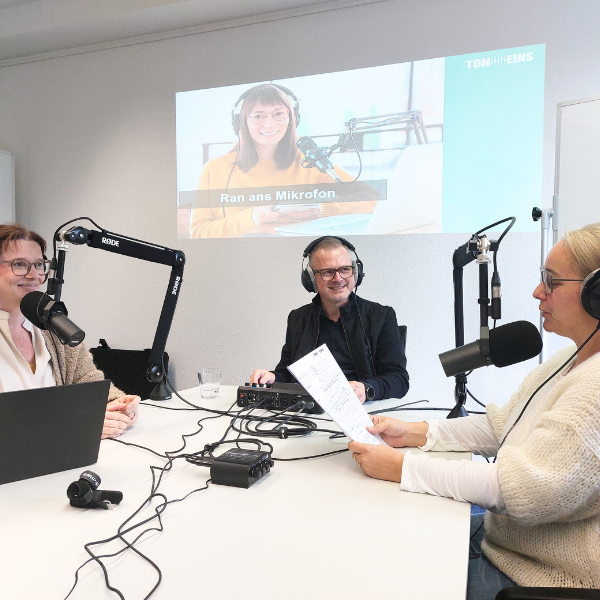 - Aufnahme von Podcasts (Studio, vor Ort & online)